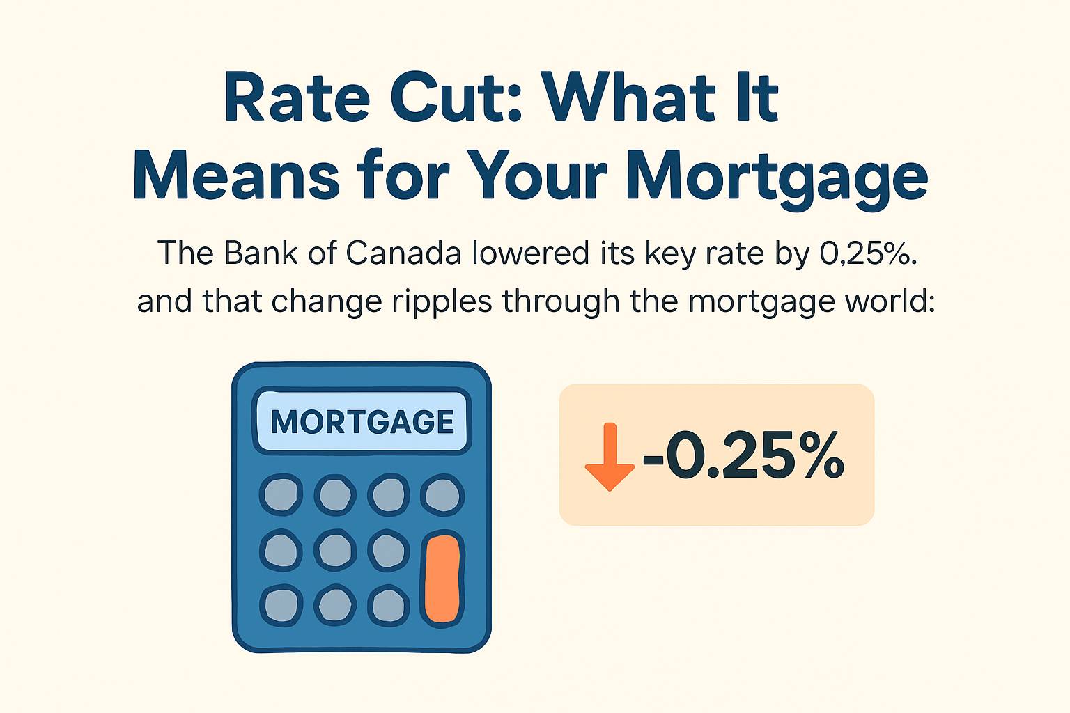 Mortgage Insights Canada – November Edition Rates, Renewals & Opportunities You Don’t Want to Miss Hi Reader, welcome to the November Newsletter. I think you'll find a few nuggets in this one! But First, can I ask that you please forward this to anyone you think will see value in it! I grow my business by your great referrals! Many Thanks... This month's Poll... Fixed or Variable Rate Fixed- I want that security Variable-I'll Risk It To Save Money 📉 Big News: Bank of Canada Cuts Rate to 2.25%...